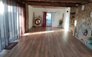 Dans une salle rénovée avec un plafond en voutins et parquet au sol, nous pratiquerons du nâtha-yoga: échauffement pour relancer les énergies et déverrouiller le corps suivi d'une série d'asanas (postures) travaillant tous les chakras, la séance sera enrichie de souffles (pranayamas), de drichtis (fixation oculaire) ainsi que de bandhas et mudras (contractions et gestes). Nous finirons sur une méditation de pleine conscience et un réveil en douceur au son du bol tibétain.